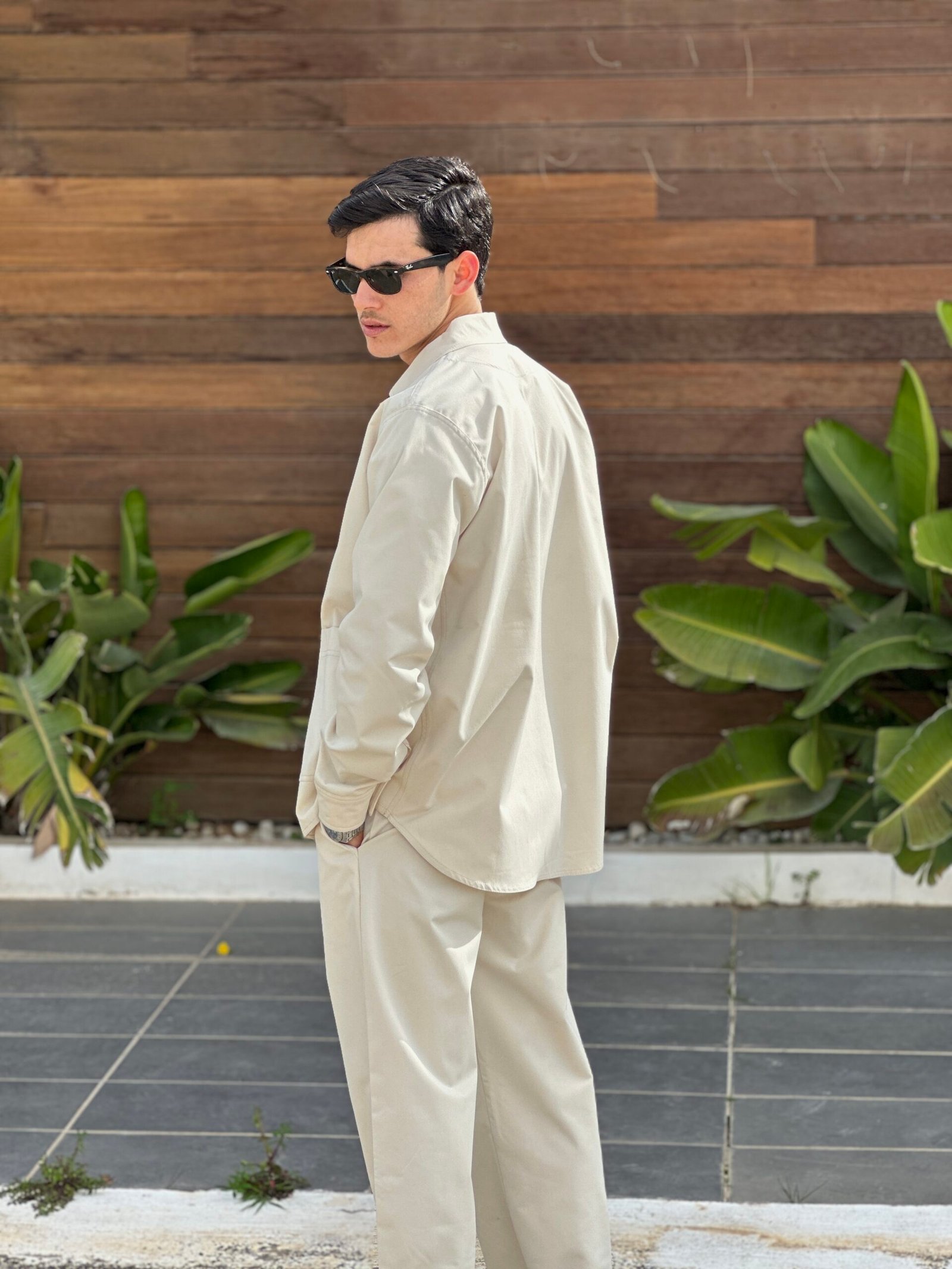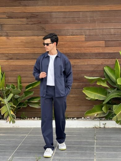 Ensemble pour homme confectionné en tissu trench (gabardine), reconnu pour sa résistance, sa tenue impeccable et son confort.