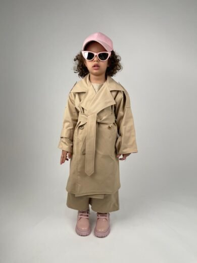 Élégant et intemporel, ce mini trench-coat pour fillette incarne le raffinement du vestiaire luxe enfant. Inspiré du trench classique, il se distingue par sa coupe soignée, ses finitions délicates et son allure chic dès le plus jeune âge.